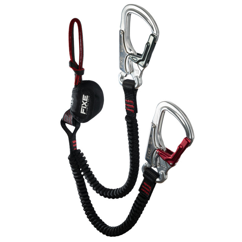 Set de via ferrata Fixe Ferratum avec système Cinchless breveté. Connexion directe à l’anneau ventral et aux cuissards pour un meilleur confort et moins de torsion. Bras élastiques, mousquetons automatiques, absorbeur d’énergie compact. Poids : 505 g. Certifié EN 958:2017.